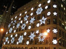 朝から、のみの市に出かけました。長時間、掘り出し物をあちこち探すわけですから、防寒をお勧めします。寒いです。アンティークリネンらしきハンカチとクロス、アクセサリーを買い、大満足。その後、ソーホーへ。キャストアイアン(鋳鉄製)とよばれるもと倉庫として作られたビルは、名物の一つ。そしてショッピング!夕方頃、ミッドタウン53丁目に再オープンしたMOMA(ニューヨーク近代美術館)へも行きました。オープン早々とあって、閉館が近づいてもにぎわっています。ホルマークでは、カードはもちろん包装紙やリボンもたくさんありました。バーウィック・オフレ社のものもあり、カーリングリボンがたくさん並べてあります。多分、人気なのでしょう。そして、ニューヨークで最も感動したもの、それは5番街からみたサックス・フィフス・アヴェニューのビルのライトアップです。昨日、見たときも感動したのですが、今日は、たまたまそのビルのまん前にいる時に、突然、音楽と共に、色が変わったり、消えたりし始めたのです。本当にびっくりと同時に感動です。光のショーが終わると共にビルに向かって拍手がおこり、大きな体の男の人が、手で目をこすっていました。多分、私は、感動の涙だと思います?でもそれぐらい良かったです。残念ながら、いつはじまるのかがはっきりしません。7時ぐらいだったのでしょうか?すいません。夕食は、またまたお寿司。その後、ホテルのバーで、ニューヨークのクリスマスを楽しみました。明日、帰ります。
