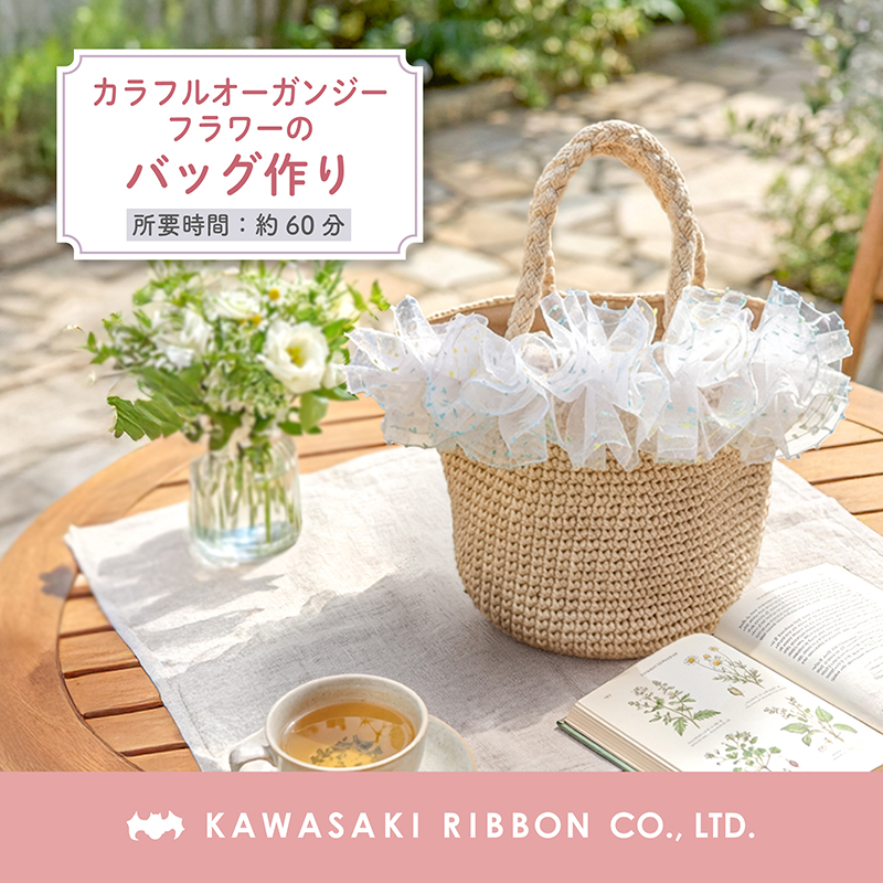 ・カラフルオーガンジーフラワーのバッグ作り