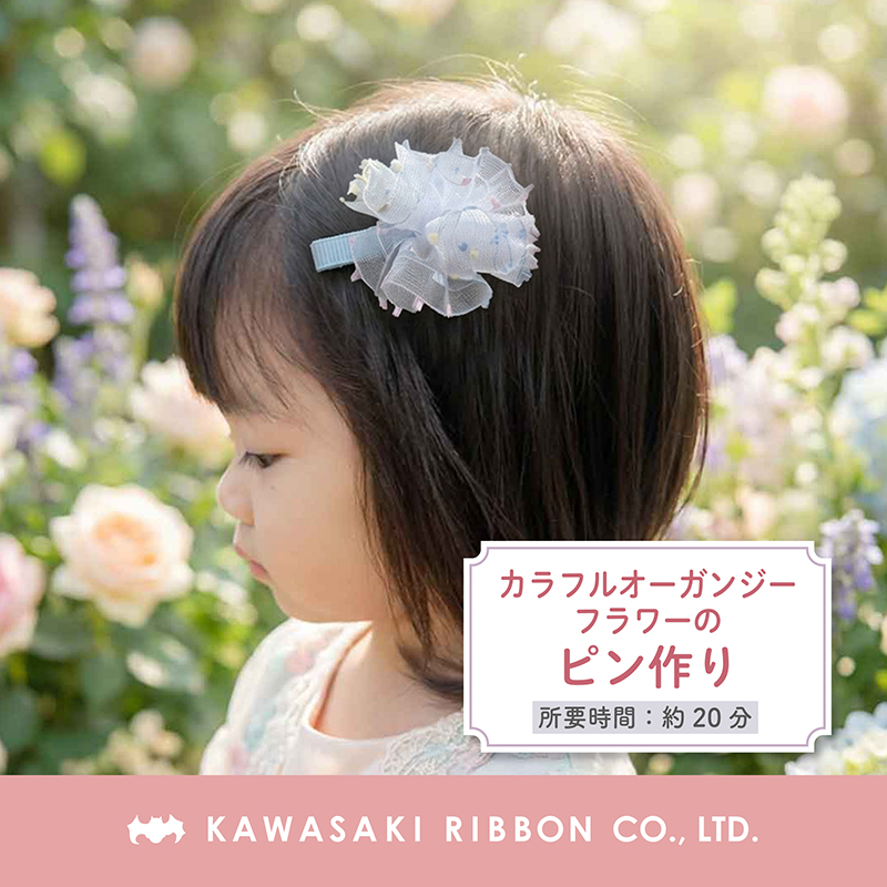 ・カラフルオーガンジーフラワーのピン作り